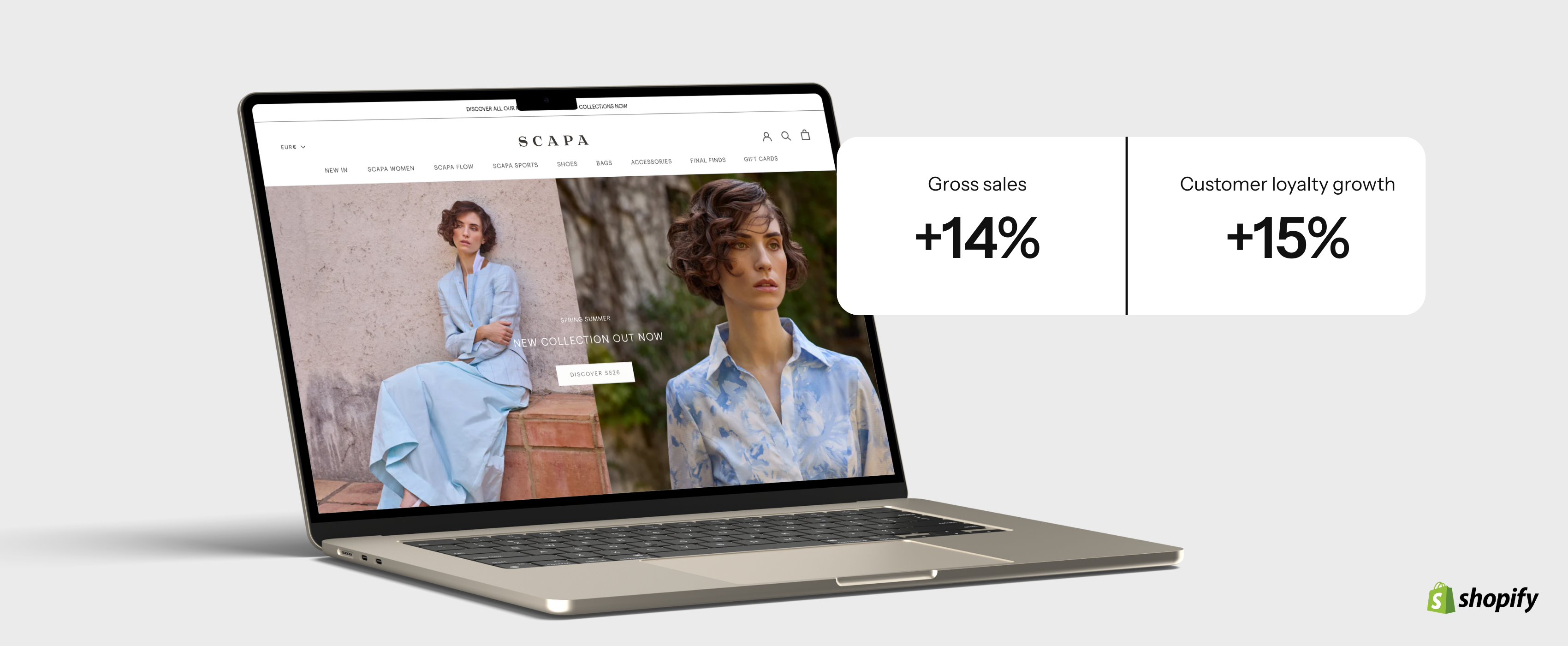 SCAPA is een premium fashionbrand met ambitie om hun online presentatie en sales drastisch te vergroten. Ze werkten met ons samen op twee kerngebieden: e-commerce optimalisatie van hun Shopify store en high-impact Meta advertising campaigns.